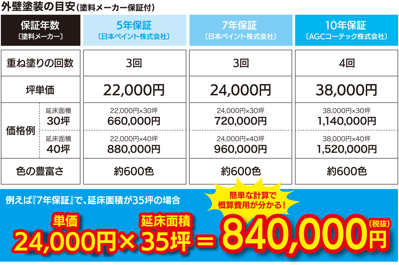 ※10年保証は、塗布量が不足している場合は保証書が発行されないため、4回塗りが基本となります。